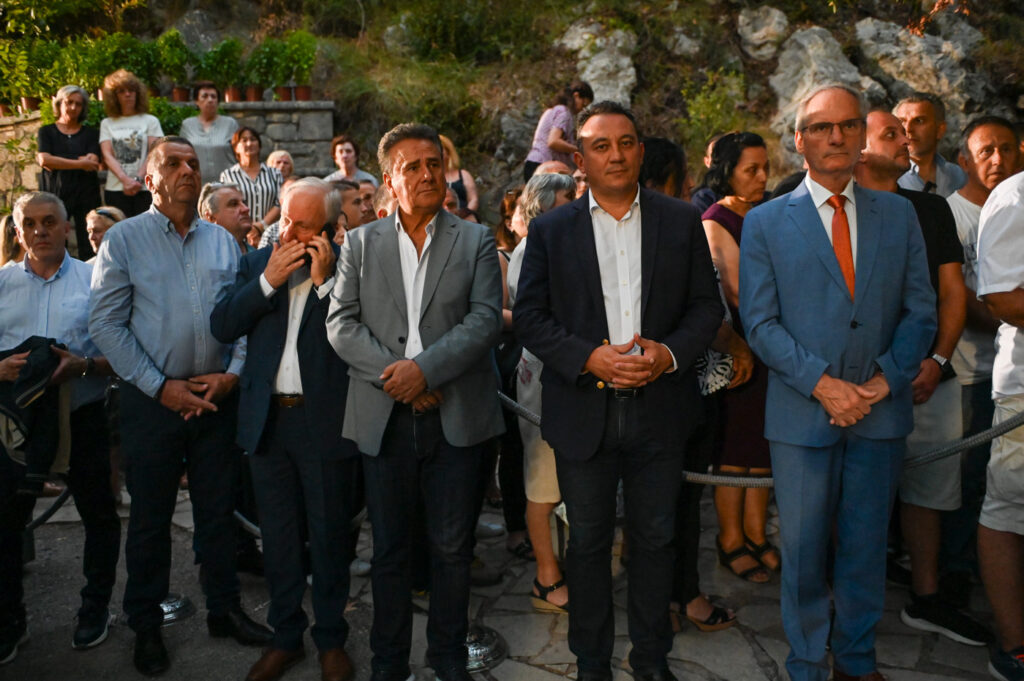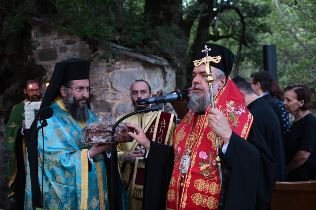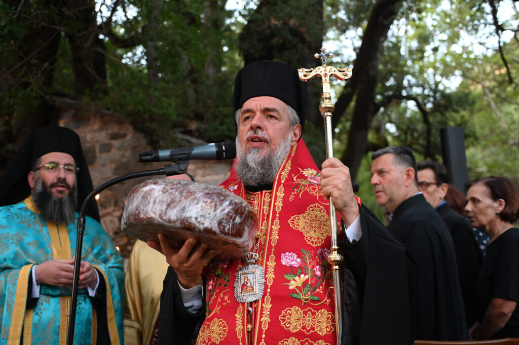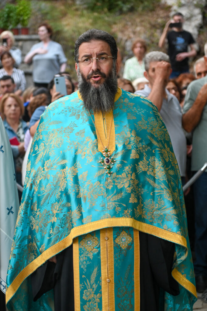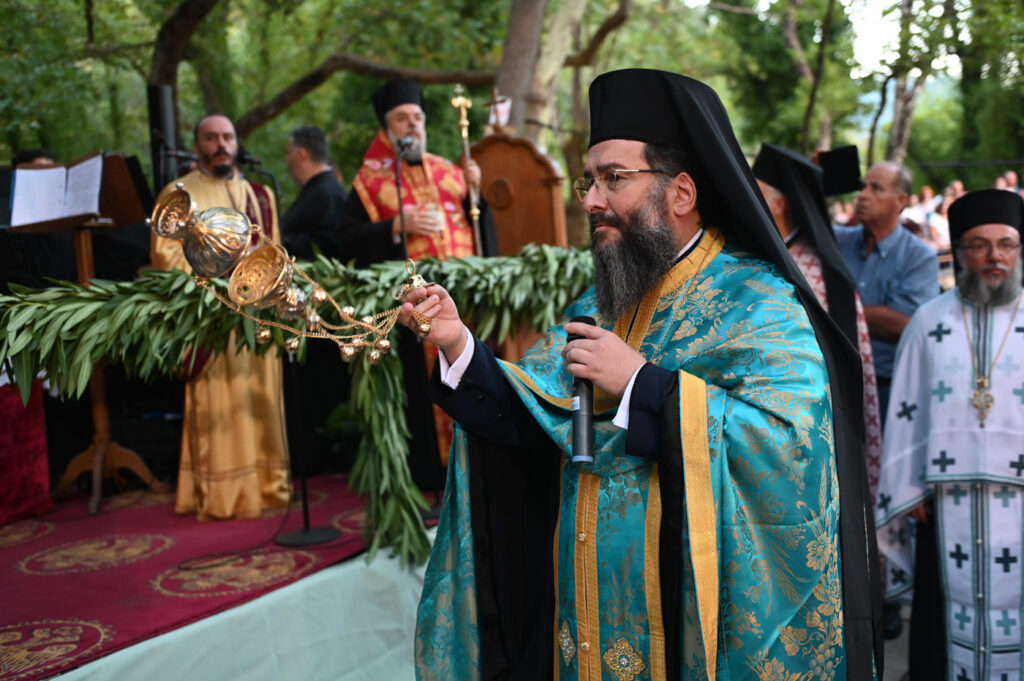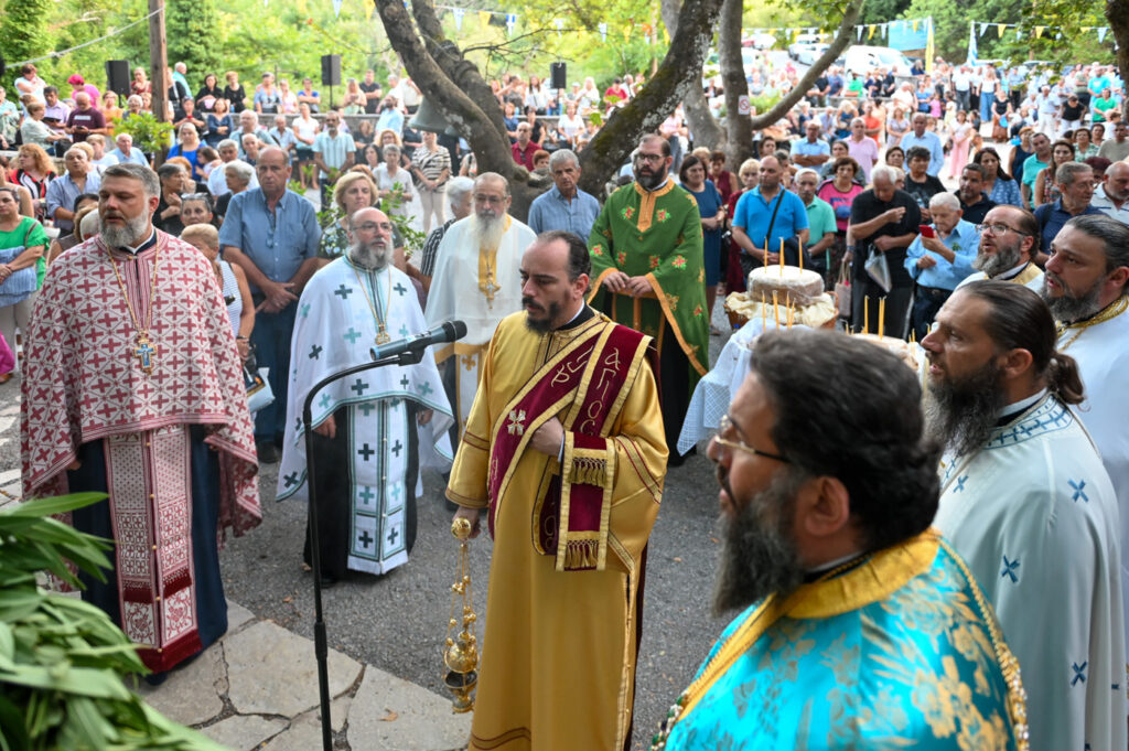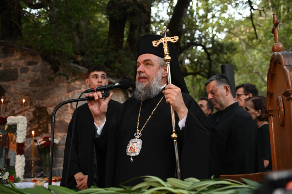 Στην Ακολουθία του Εσπερινού χοροστάτησε ο Σεβασμιώτατος Μητροπολίτης Γόρτυνος και Μεγαλοπόλεως κ. Νικηφόρος, πλαισιούμενος από τον Πρωτοσύγκελλο της Ι. Μ. Μεσσηνίας Πανοσιολ. Αρχιμ. Φίλιππο Χαμαργιά, τον Πανοσιολ. Αρχιμ. Χρυσόστομο Καλύβα – Ιεροκήρυκα της Ι. Μ. Χαλκίδος, τον Πανοσιολ. Αρχιμ. Χριστοφόρο Παπαθανασίου – ο Εφημέριο της Ι. Μονής Αγίου Γεωργίου ΑΡΜΑ Χαλκίδος, τον Γενικό Αρχιερατικό της Ι. Μ. Γόρτυνος Πανοσιολ. Αρχιμ. Ιωσήφ Αγγελίδη, τον Πανοσιολ. Αρχιμ. Ελπιδοφόρο Μπεναρδή – Ηγούμενο της Ι. Μονής Κολοκοτρώνη, τον Πρωτοπρ. Βασίελιο Δάρα, τον Πρωτοπρ. Παναγιώτη Σπανό και τον π. Κωνσταντίνο Παπαϊωάννου.