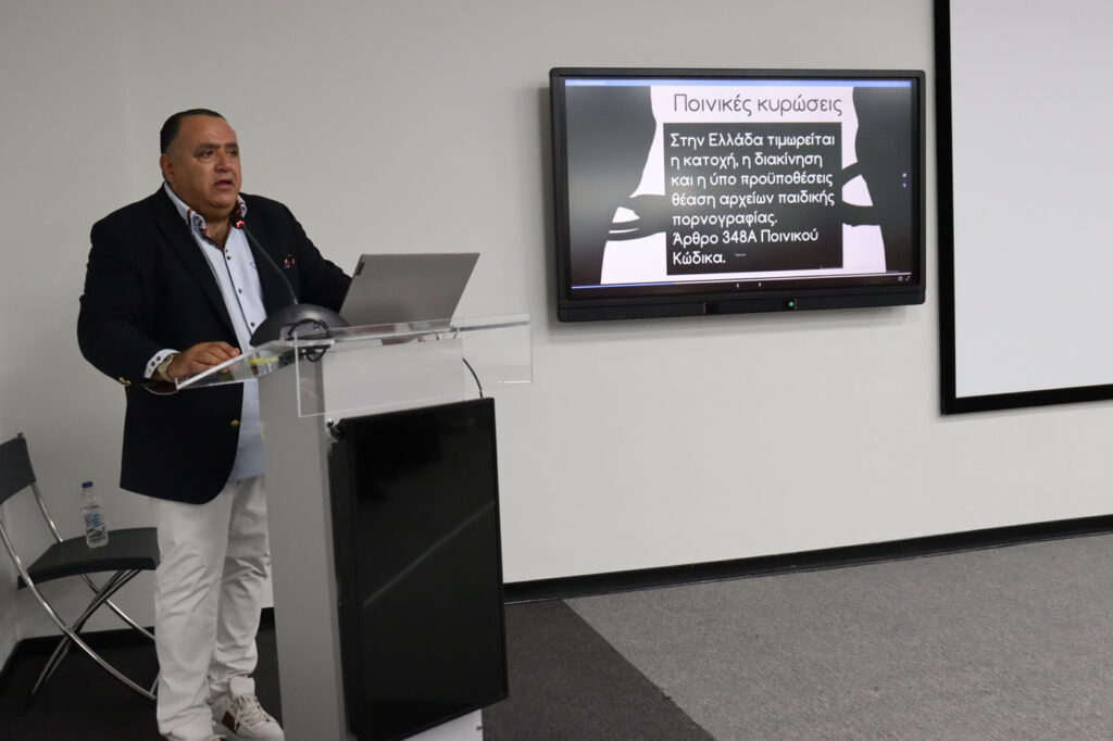 Κεντρικός ομιλητής ήταν ο κ. Μανώλης Σφακιανάκης, ιδρυτής του CSI Institute και πρώην επικεφαλής της Διώξεως Ηλεκτρονικού Εγκλήματος, ο οποίος, μαζί με το εξειδικευμένο επιτελείό του, παρουσίασαν με σαφήνεια και παραστατικά παραδείγματα τους κινδύνους που ελλοχεύουν στον ψηφιακό κόσμο: διαδικτυακές απάτες, κυβερνοεκφοβισμό, εθισμό, παραβίαση προσωπικών δεδομένων, καθώς και τις μεθόδους πρόληψης και προστασίας.