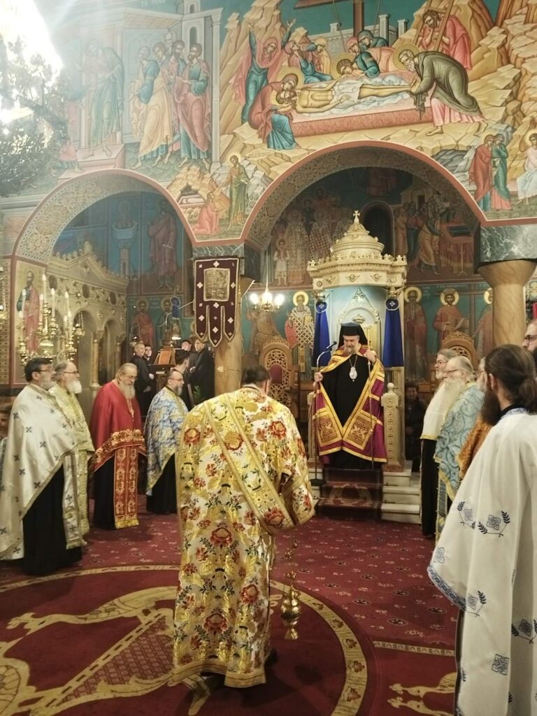Την κυριώνυμο ημέρα τελέσθηκε ο Όρθρος και η Πανηγυρική Αρχιερατική Θεία Λειτουργία, προεξάρχοντος του Σεβασμιωτάτου Μητροπολίτου κ. Νικηφόρου. Την διακονία του λόγου ανέλαβε ο Γενικός Αρχιερατικός Επίτροπος Αρχιμ. Ιωσήφ Αγγελίδης, ο οποίος στο κήρυγμά του αναφέρθηκε στο ιερό πρόσωπο του Αγίου Νικολάου, στη μεγάλη προσφορά του στην Εκκλησία και στον άνθρωπο, καθώς και στη διαχρονική επικαιρότητα του μηνύματος της αγάπης, της δικαιοσύνης και της θυσιαστικής προσφοράς.