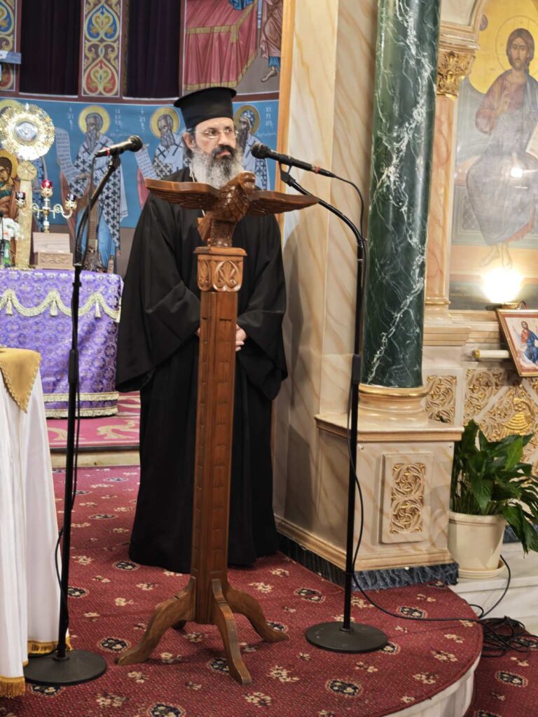 Κατά την εισαγωγική του προσφώνηση, ο Σεβασμιώτατος καλωσόρισε θερμά τον εκλεκτό ομιλητή και αναφέρθηκε στο πρόσωπο και τη διακονία του, υπογραμμίζοντας ότι συγκαταλέγεται ανάμεσα στους πλέον γνωστούς σύγχρονους ιερείς της Εκκλησίας μας. Επισήμανε ακόμη τη βαθιά θεολογική του κατάρτιση, την ποιμαντική του ευαισθησία και τη διάκριση που χαρακτηρίζει τον λόγο και τη διακονία του, καθώς και την πολυετή προσφορά του στον χώρο της πνευματικής καθοδήγησης και της εκκλησιαστικής μαρτυρίας.